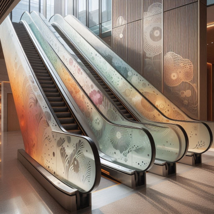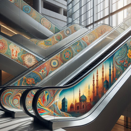 برخی مجتمعهای تجاری برای تنوع بصری از برچسبهای تبلیغاتی روی پلهبرقی استفاده میکنند، اما این روش به دلیل دوام پایین و ناهماهنگی با عناصر معماری، تأثیر چندانی در جذابیت محیط ندارد. در مقابل، نوآوری در طراحی پلهبرقی با استفاده از متریالهای مدرن مانند شیشه و بهرهگیری از فناوریهای چاپ یا حکاکی میتواند مسیر حرکت را به یک تجربه بصری چشمنواز تبدیل کند.